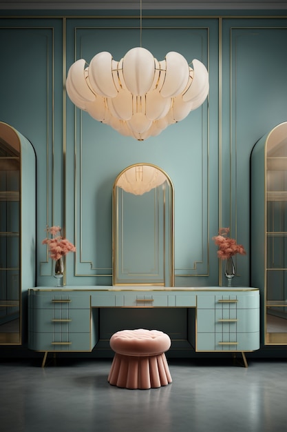 - Модерн: Для этого стиля характерны яркие акценты и геометрические формы. Используйте глубокие, насыщенные оттенки бирюзового в сочетании с черным, белым и металлическими элементами. Это придаст пространству современный и динамичный вид.