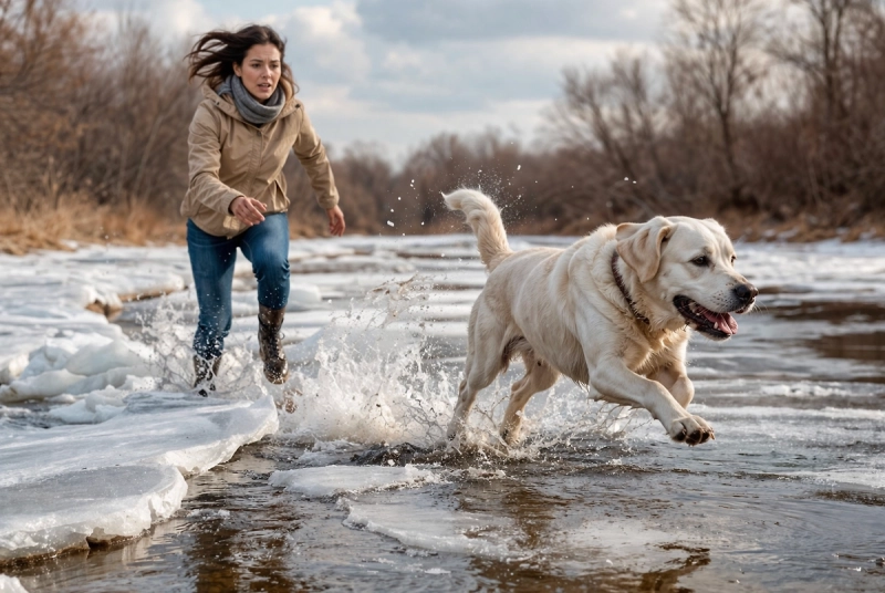Позже женщина рассказала, что всё началось с собаки. Животное погналось за птицами, выбежало на лёд и провалилось, а хозяйка бросилась его спасать.