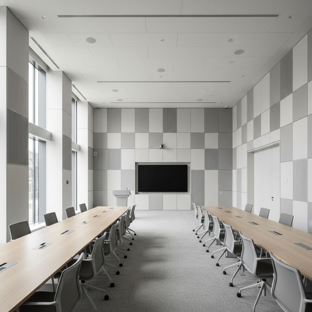 Например, в конференц-зале площадью 100 м² и высотой 3,5 м установка акустических панелей на 30% поверхности стен и потолка позволяет снизить время реверберации с 2,0 до 0,7 с — значения, соответствующего требованиям СП 51.13330.