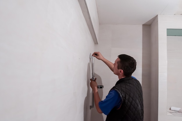 Следующим шагом является разметка. Используйте уровень и маркер, чтобы отметить места крепления профилей. Обратите внимание на горизонтальность и вертикальность линий, так как от этого зависит конечный результат.