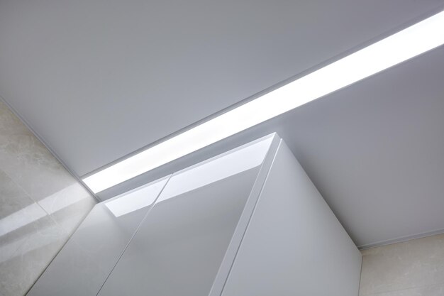 Другой распространенный способ – натяжные конструкции. Они отличаются простотой монтажа и широким выбором цветов и фактур. Натяжные потолки могут быть как однородными, так и содержать интегрированные элементы, такие как светодиодные ленты или зеркала, что добавляет им функциональности и уникальности.
